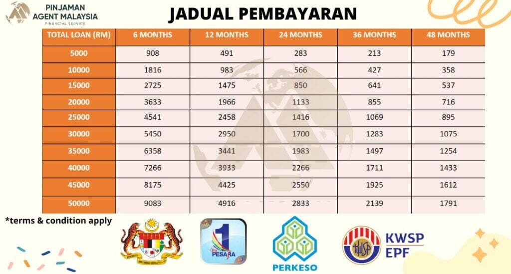 Pinjaman anda dibayar balik pada setiap bulan melalui: